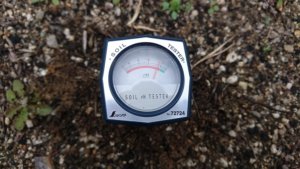 2.酸度計を土に差し、1分程度で値が安定するのを待つ
