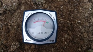 我が家は畝の部分(左)と畝じゃない部分(右)で若干異なり、それぞれpH6.8、6.6でした。
