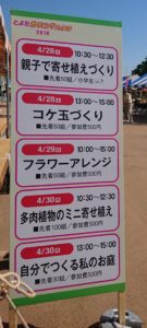 各日に目玉となるイベントがあります。ガーデニングというと、大人のイメージが強いのでイベント自体、大人しか楽しめないかと思いきや、ちゃんと子供用のイベントも用意されています。