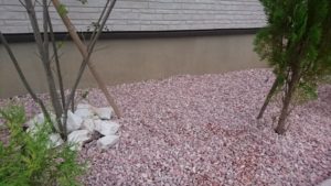 砂利まで敷き詰めるとこのようになり、土むき出しよりオシャレに、そして雑草対策も出来て最高です!