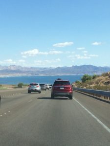 常にこのように高速道路です。写真前方に見えるのがフーバーダムです。