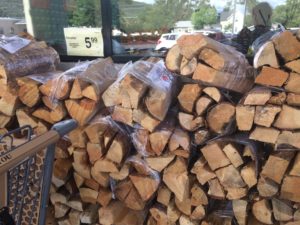 僕は夕飯にBBQをする予定だったので、材料を購入しました。アメリカではBBQ時に炭ではなく薪を使うようで、このように普通に売っています。