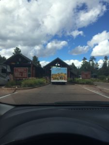 グランドキャニオンはGrandCanyon National Park内になるので、National parkへの入場料が必要です。したがってSouth Rim入口にこのようなゲートがあって、支払います。支払いが済むとレシートが渡されるので見える場所(ダッシュボードなど)に置いておきます。
