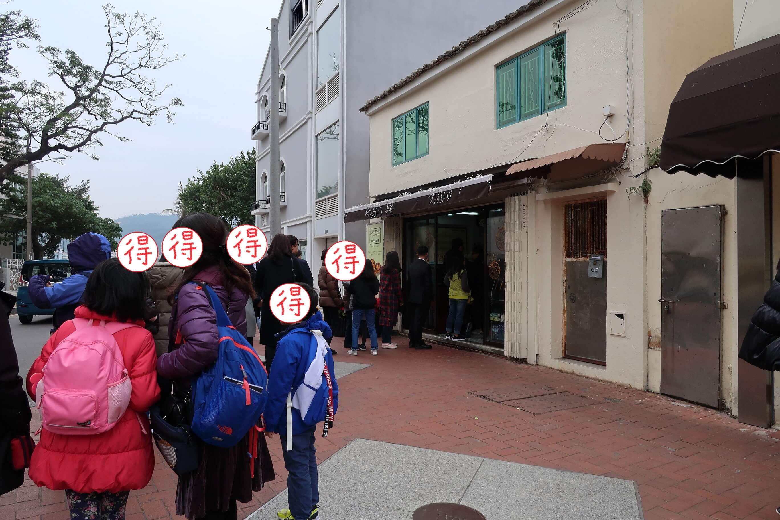 ちなみにバス停を降りてすぐの所にエッグタルトの売店があります。こちらはツアー客も購入するので、結構並びます。コーヒーいらずにタルトだけ食べ歩き!という方は、こちらでどうぞ!