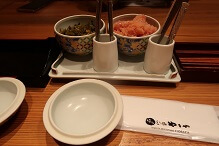 こんな感じで、各テーブルに置いてあります。牛丼屋の紅ショウガに近い感じでしょうか。