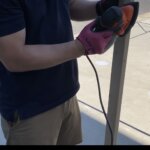 作業中の写真。インパクトドライバーの当てる角度を変えながら削っていきます、、、。